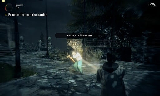 Düşmanlarınızla savaşırken en önemli silahınız ışık, yani el feneri. Herhangi bir düşmana zarar vermeden önce karşıdakinin gözüne gözüne (ya da vücudunun herhangi bir yerine) ışık tutmanız gerekiyor. Fenerin gücünü arttırıp düşmanı vurulabilir hale daha da çabuk getirebiliyorsunuz. Bir kere ışık tarafından yaralandıktan sonra tabancaydı, tüfekti, pompalıydı, silahlar kullanarak karşıdakini harcayabiliyorsunuz. Bir kere bu tür bir savaş sistemi bence gayet hoş olmuş. Ben çok bilirim sadece aniden çıktığı için korkutan, ama sonra takır takır kurşun atınca hemen ölen “korkunç” düşmanları. Wake’in oyununun savaş sistemi olması gerektiği gibi insanı geriyor. Özellikle neredeyse her zaman birden fazla düşmanla aynı anda uğraştığınız için gerilim seviyesi daha da artıyor. Sevdim. Olmuş.