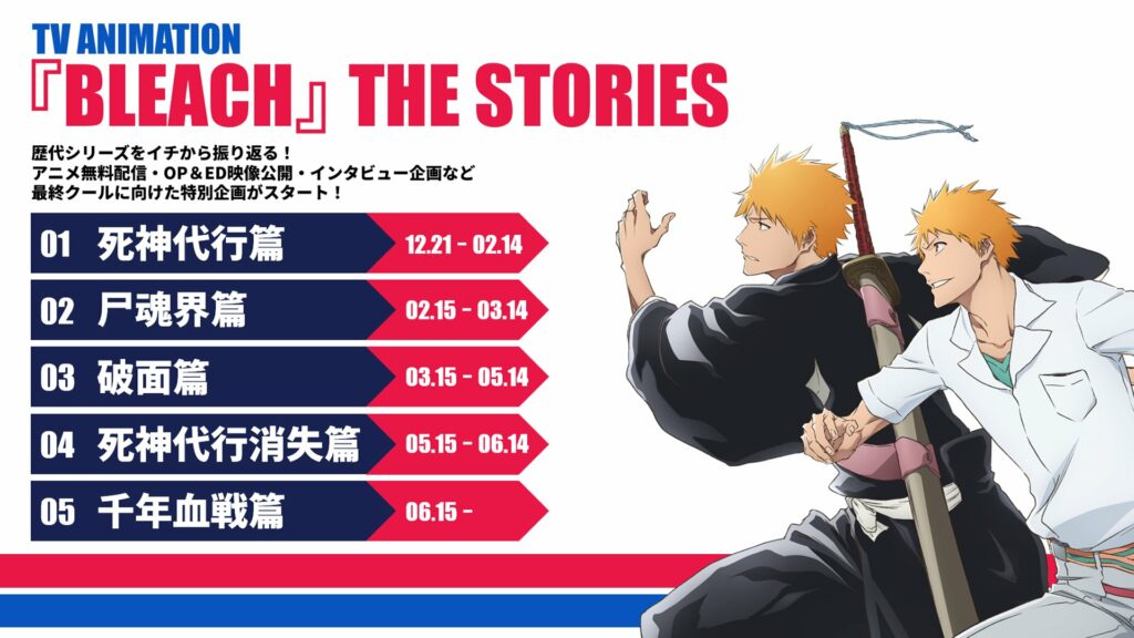 Sadece final sezonuyla yetinmiyoruz, aynı zamanda tam bir Bleach kutlamasına şahitlik edeceğiz. Final öncesi heyecanı diri tutmak isteyen ekip, “TV ANIMATION ‘BLEACH’ THE STORIES” adlı özel bir projeyi hayata geçiriyor. Bu proje, serinin 2004’ten bu yana geçirdiği evrimi gözler önüne serecek.