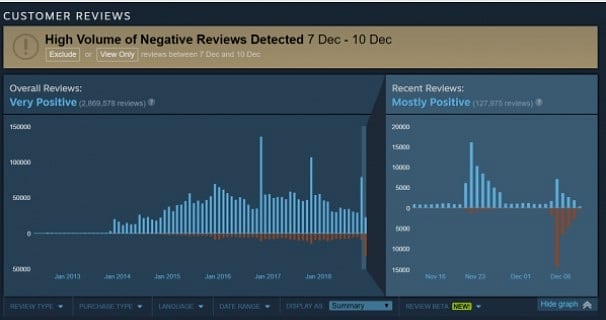 Oyunun mevcut oyuncuları bu durum hakkında olumsuz eleştirilerini oyunun Steam sayfasında negatif geri bildirim olarak paylaştı. Bu paylaşılan negatif geri bildirim sayısı 25.000’i geçti!