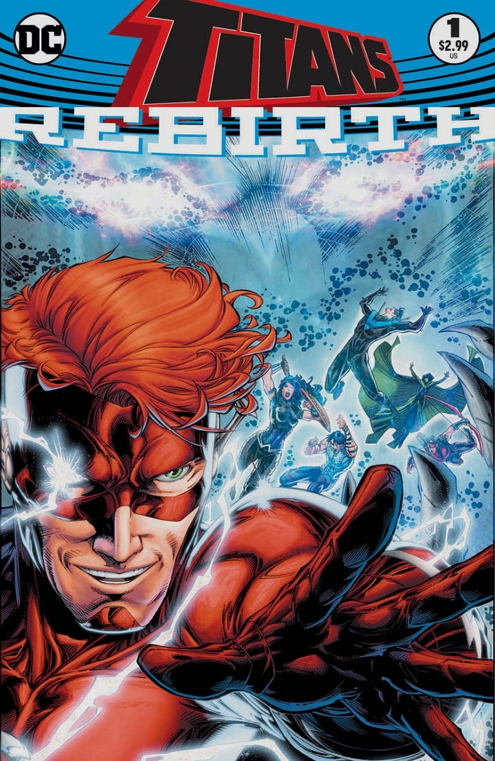 Açığa çıkanlardan biri de Wally’nin artık takımın bir parçası olduğunu gösteren Titans: Rebirth #1 kapağı. Onu, Kid Flash kostümünden tasarlanan kafası açıkta kalan maskeli yeni bir kostümle görüyoruz. Wally, Barry Allen Flash ile bir arada yaşıyor ve her ikisi de Flash ismini kullanıyor. Aynı zamanda New 52’den diğer bir Wally West’te orada ve Kid Flash rolüne bürünmeye çalışıyor.