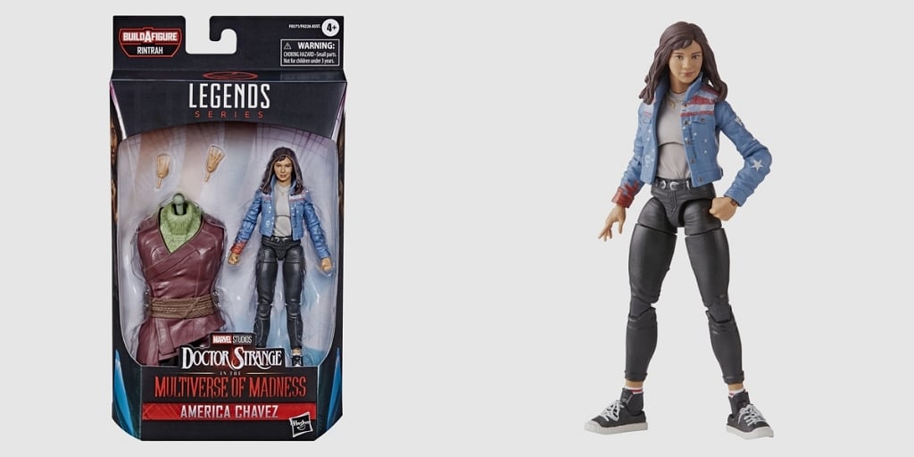 Marvel’in çok boyutlu süper güçlü kahramanı America Chavez, diğer adıyla Miss America olan bu karakterin figürü de karşımıza çıkıyor. Böylece, figürün foto-gerçek yüz baskı teknolojisi ile süslenmesiyle, artık karakterin Multiverse of Madness’ta nasıl görüneceğini biliyoruz. Gerçekten de, yıldızlar ve çizgilerle açık bir şekilde kaplanmış bir kot ceket, siyah kot pantolonları ve siyah-beyaz yüksek üstleri giysisini tamamlıyor.