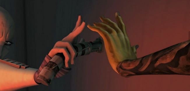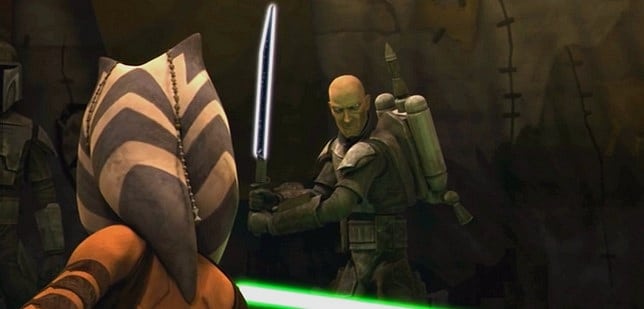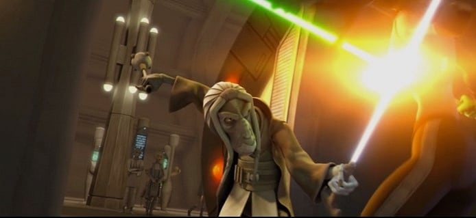 Televizyon dizisi The Clone Wars‘da karşımıza çıkan Jedi Ustası Tera Sinube, yaşlı ustaların da kendine has taktikleri olduğunu gösterdi. Sinube’nin beyaz ışın kılıcı, katlanarak bir bastona dönüşebilen benzersiz bir tasarıma sahipti.