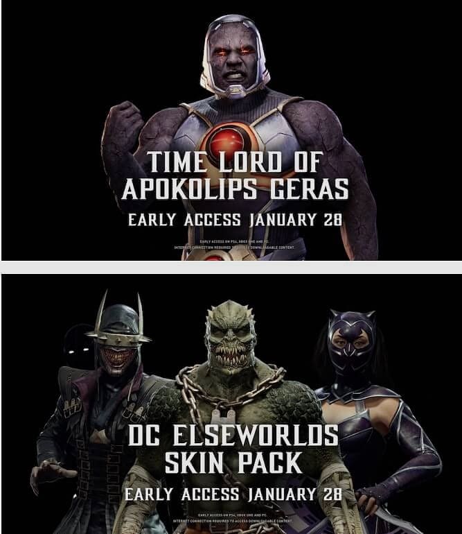 Daha önce Spawn ve Terminatör için tanıtım videolarını yayınlayan oyun şimdi de Joker’in tanıtım videosunu bizlere sundu. Ayrıca bu videoda Baraka’yı DC kötüsü olan Killer-Croc kostümü ile görüyoruz. Ayrıca yine Batman temalı kostümleri ile gördüğümüz başka karakterler de mevcut. Bu kostümlerin sahipleri ise Noob Saibot(The Batman Who Laughs) ve Kitana(Catwoman). Bu set DC Elseworlds Skin Pack ek paketi ile satışa sunulacak. Joker karakterinin ise 28 Ocak’ta Kombat Pass sahiplerine sağlanacağı, ama 4 Şubatta tamamen satışa sunulacağı söyleniyor.