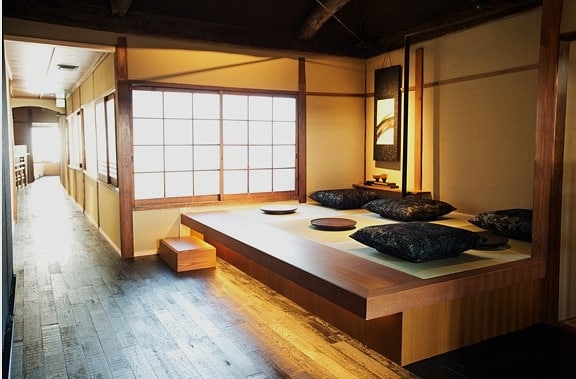 Japon çay evinden kalan tatami(japonyada kullanılan bir tür hasır) yerler, zabuton minderler ile müşterilerine geleneksel havayı tattırıyorlar.
