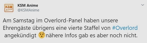 Her ne kadar duyurulduğu söylese de AnimagiC katılımcıları Overlord 4’ü doğrudan duyurmadıklarını iddia ediyorlar. Bir hayran AnimagiC etkinliğinde 4. sezon hakkında soru sorduğunda Maruyama, animenin 4. sezon üretimi hakkında bir şey bilemeyeceğini söyledi. Fakat Sugawara hemen mikrofonu alıp 4. sezonun gelmesinin “son derece muhtemel” olduğunu söyledi.