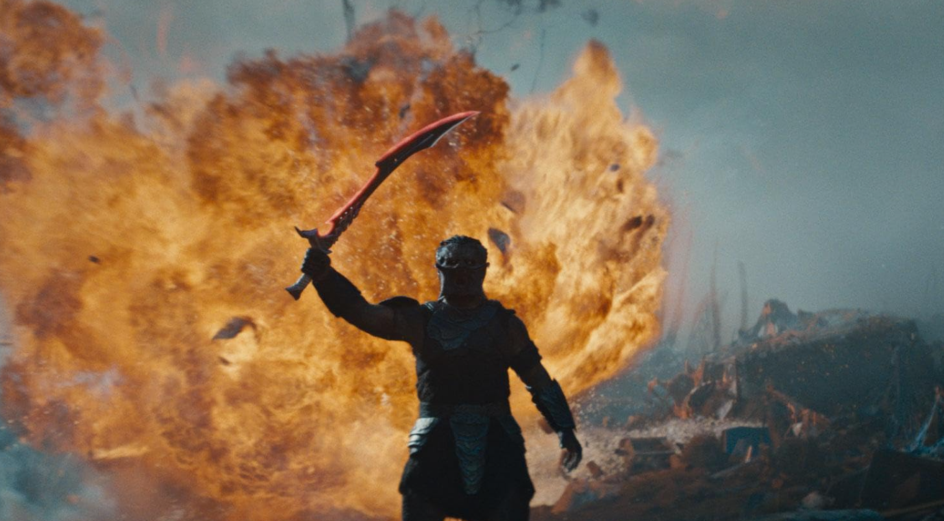 Filmle alakalı en büyük artı kesinlikle aksiyon sahneleri. Dek klanının da karar kıldığı gibi pek de bilek gücüne sahip biri değil. Karakterimiz bu eksikliğini klanının aksine karşı tarafa doğrudan saldırmak yerine çokça çevresel etmenleri kullanarak veya yan araçlardan fayda sağlayarak kapatıyor. Klanı her zaman gücü savunsa da burada da görüyoruz ki bir canlı ancak çevresine adapte olursa varlığını sürdürebiliyor. Felsefi yanı bir kenara bırakırsak gerçekten baya iyi aksiyon sahneleriyle karşı karşıyayız. Aksiyon sahnelerini kelimelerle nasıl tarif edebilirim bilmiyorum ama deneyeceğim. Dek’in silah çeşitliliği çok fazla ve bu da bize oldukça çeşitli savaş anları sağlıyor. Benim aklımda kalan en iyi savaş anıysa Thia karakterinin üst bedeniyle alt bedeni ayrıyken, üst bedeninin birileriyle dövüşmesi ve alt bedeninin de başka birileriyle dövüşmesiydi. Bunlar yaşanırken kimi zaman ayrı beden parçaları koordine bir şekilde hareket ederek aynı düşmanı da alt ediyor. Bu şekilde akılcı savaşların yanında Kalisk karakterini içeren epik sahnelere de şahitlik ediyoruz.