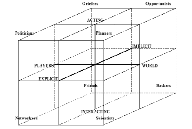Grafik içerisinde yer alan her bir küçük küp bir oyuncu tipini temsil etmektedir. Ayrıca bu grafik oyuncuları daha özgürce sınıflandırmamızı sağlamaktadır. Mesela bu grafiğe göre bir oyuncu Killer olabilir ancak kimseyi öldürmez. Ayrıca bu grafik ile oyuncuların değişimlerini de daha rahat görebiliriz.