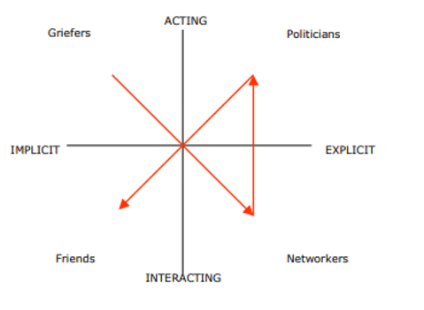 Buradaki grafik ile gözlemleyebiliriz. Tabii ki bu grafikler keskin doğrular içermemektedir. Oyuncu kendisi hakkında daha çok şey fark ettikçe oyuncu tipini değiştirebilir.