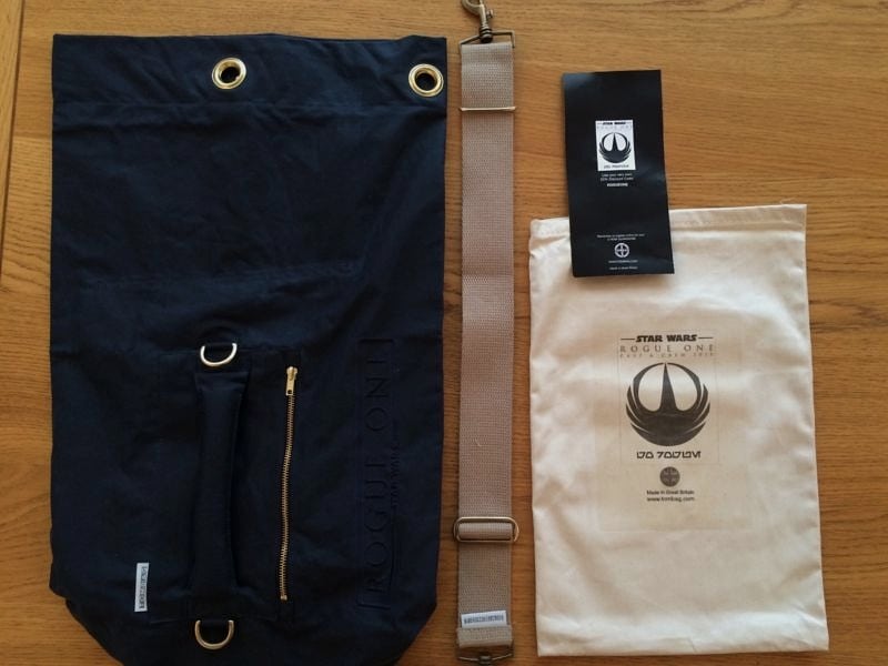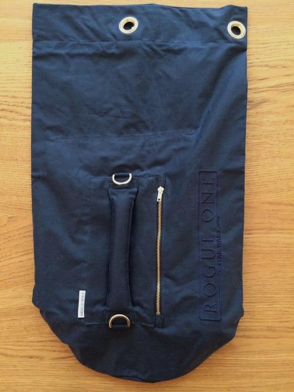 Çantanın üzerinde yer alan logo, Rebel Alliance’ın klasik amblemi olan Rebel Starbird’ün modifiye edilmiş bir versiyonuydu. Bu amblem, artık Resistance olarak bilinen isyancıların simgesi olarak da kullanılıyor. Logonun üzerinde ise “Star Wars Rogue One Cast & Crew 2015” yazısı bulunuyordu. Amblemin altında ise Star Wars Evreni’nin kendine özgü yazı dili olan Aurebesh ile “Go Rogue” sloganı dikkat çekiyordu. Henüz resmi olarak piyasaya sürülmemiş olmasına rağmen, bu logonun oldukça iyi hazırlanmış olması, gerçek olma ihtimalini güçlendiriyordu. “Go Rogue” gibi kısa, akılda kalıcı ve filmin temasıyla uyumlu bir slogan, promosyonlar için mükemmel bir seçim olarak değerlendirildi.
