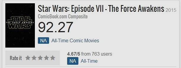 Bu arada Star Wars: The Force Awakens gösterime gireli 4 hafta oldu ve henüz bir ay dolmadı. Avatar 34 hafta sonu, Titanic 41 hafta sonu, Jurassic World 23 ( yaz sezonu, geleneksel olarak gösterimde kalmak açısından daha zor bir sezon), The Avengers 22, Age of Ultron 23 ve Furious 7,11 hafta boyunca gösterimde kaldı.